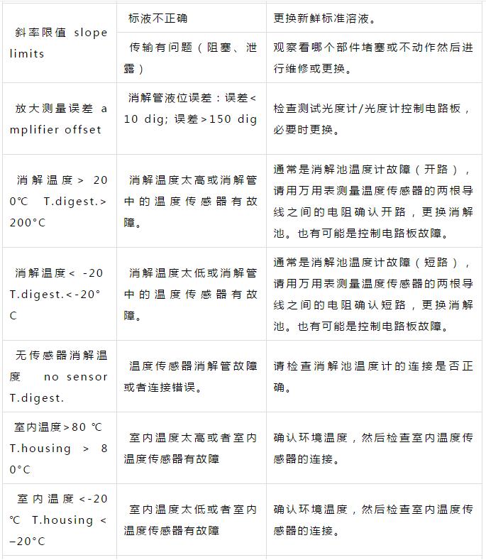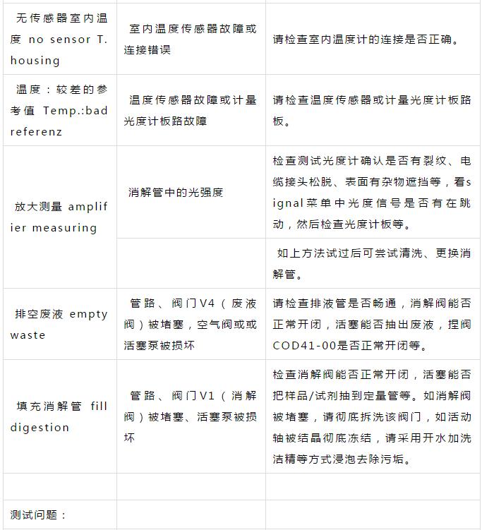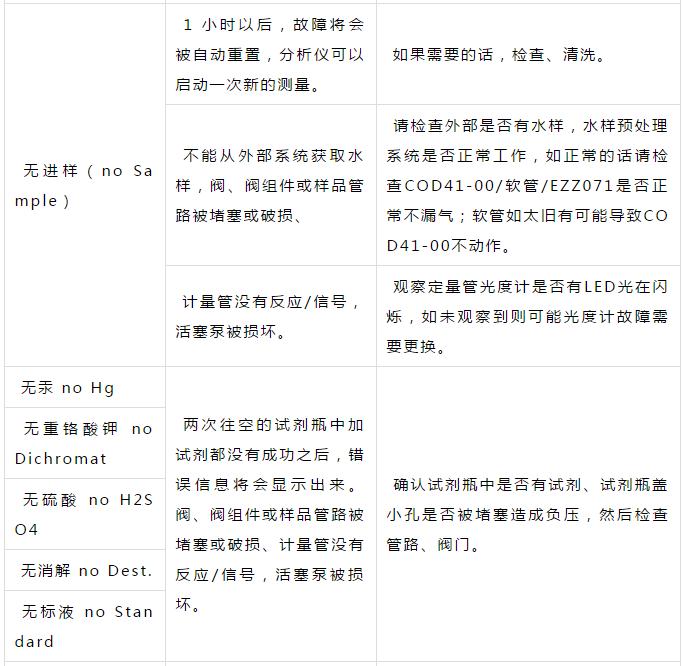 二、CODmaxII故障對應措施表,
