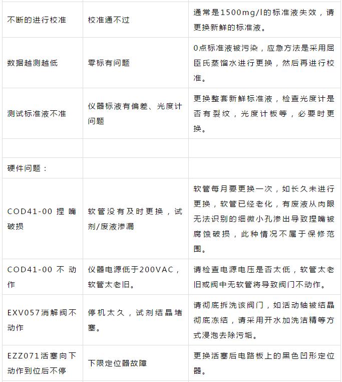 污水處理廠COD在線監測常見故障對應措施表